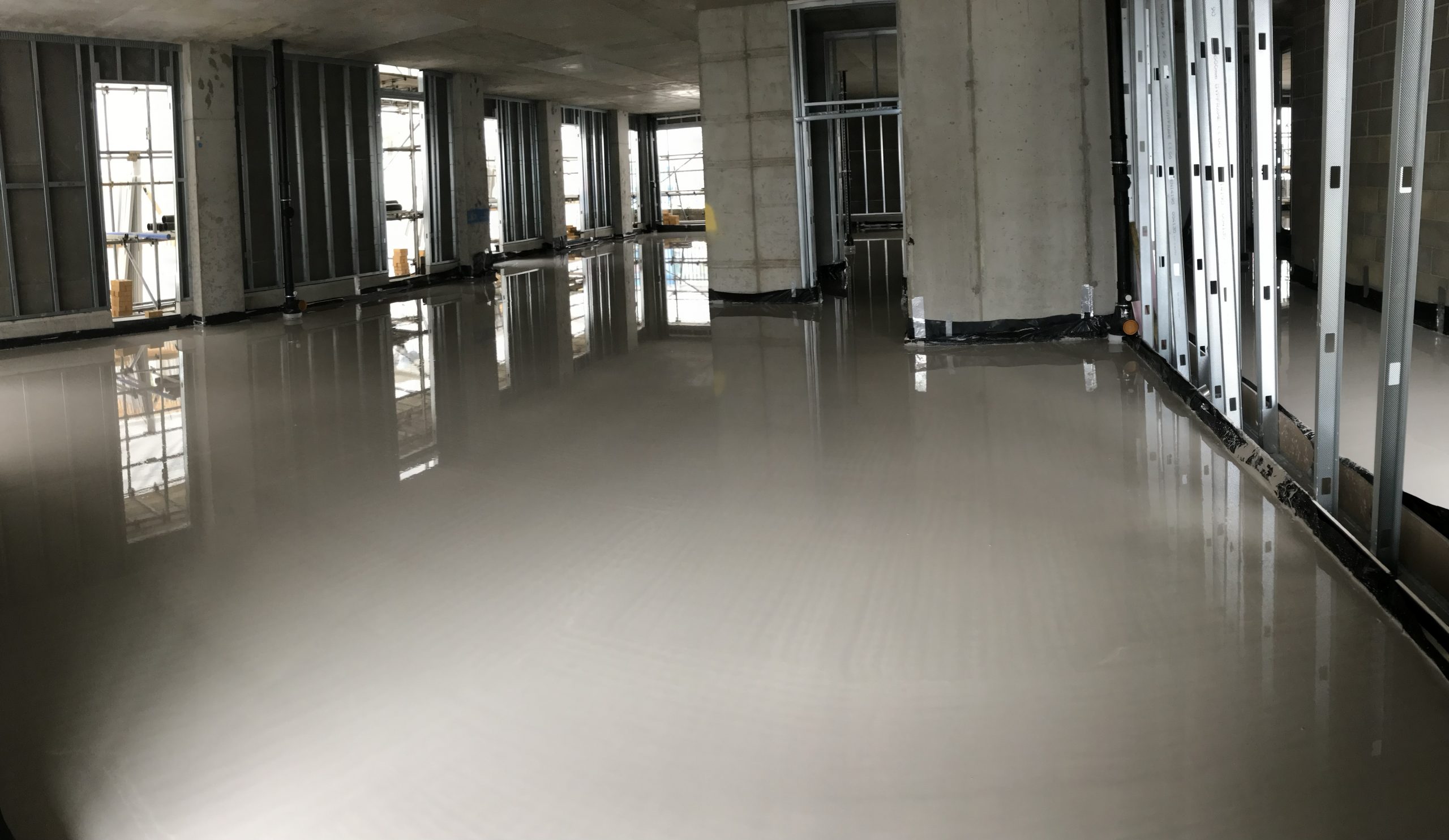 We can also install any type of thermal insulation or acoustic insulation prior to pouring the flow screed. The prep work with flow screed is key to a quality final product. Because of the nature and consistency of any flow screed the preparation needs to be 100% sealed. Imagine it to be like a swimming pool lining, any small holes and the screed with simply flow out to unwanted areas.
